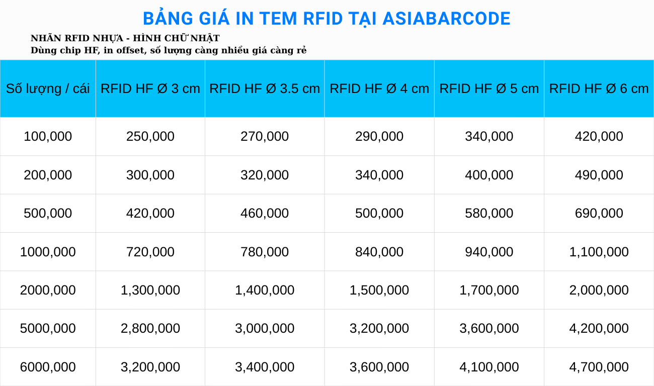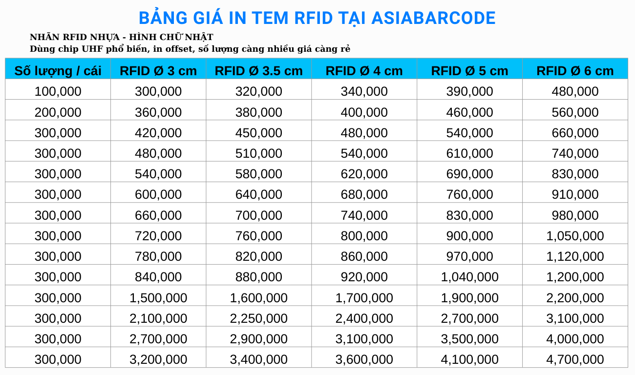4. Bảng giá in nhãn RFID tại AsiaBarcode