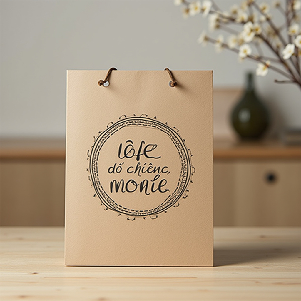- Chất liệu: giấy kraft tự nhiên, định lượng 180–300 gsm, có thể cán gân, phủ bóng hoặc phủ mờ.