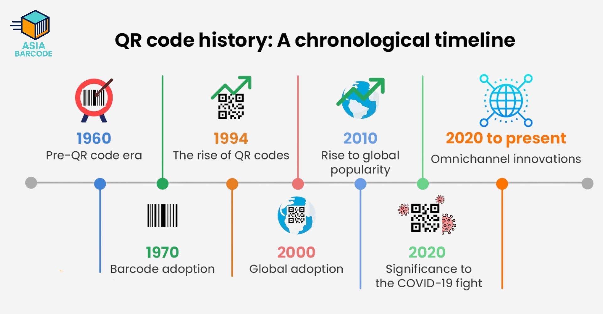 - 1994: QR Code ra đời, tập trung vào tốc độ quét và khả năng lưu trữ lớn